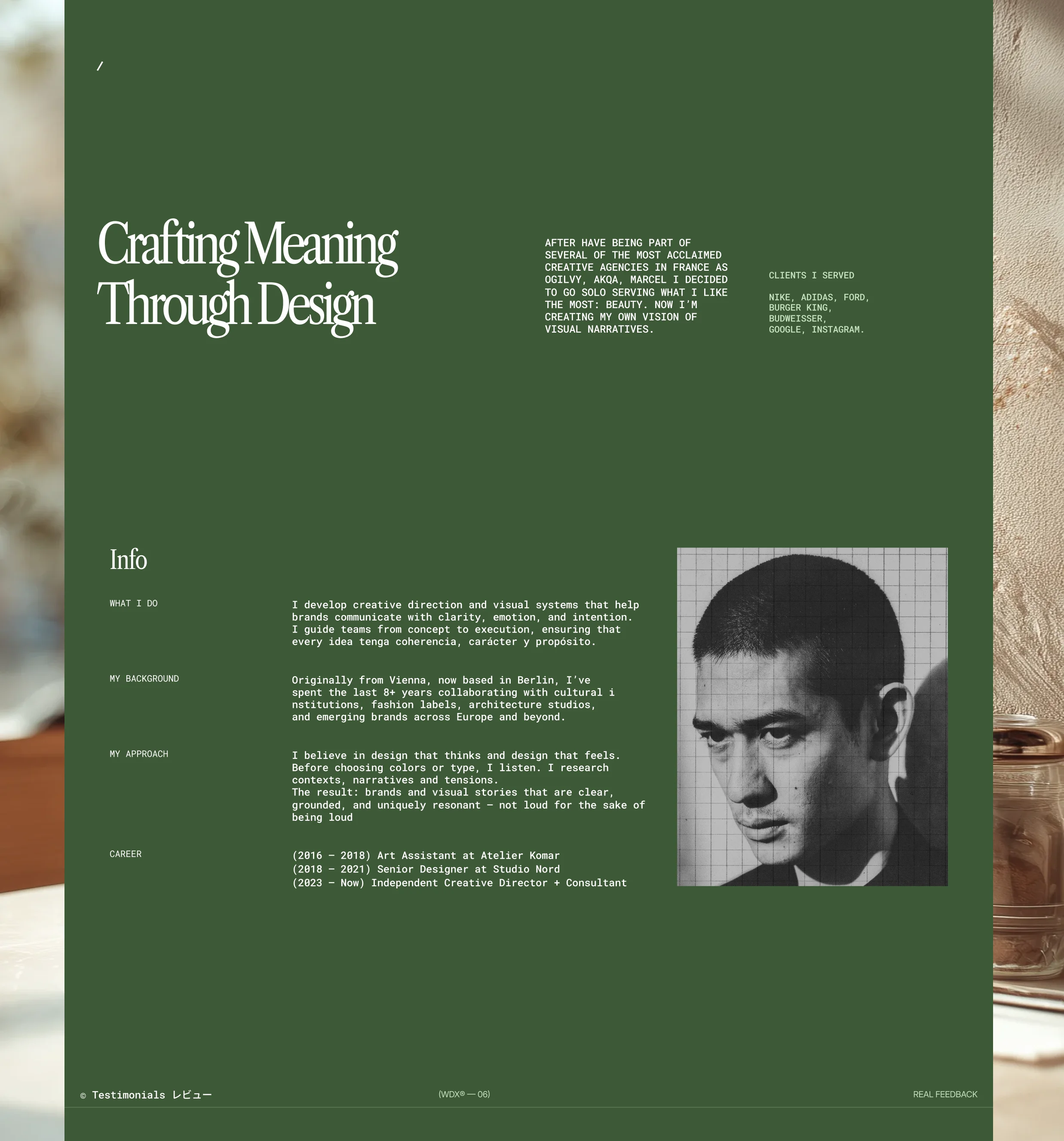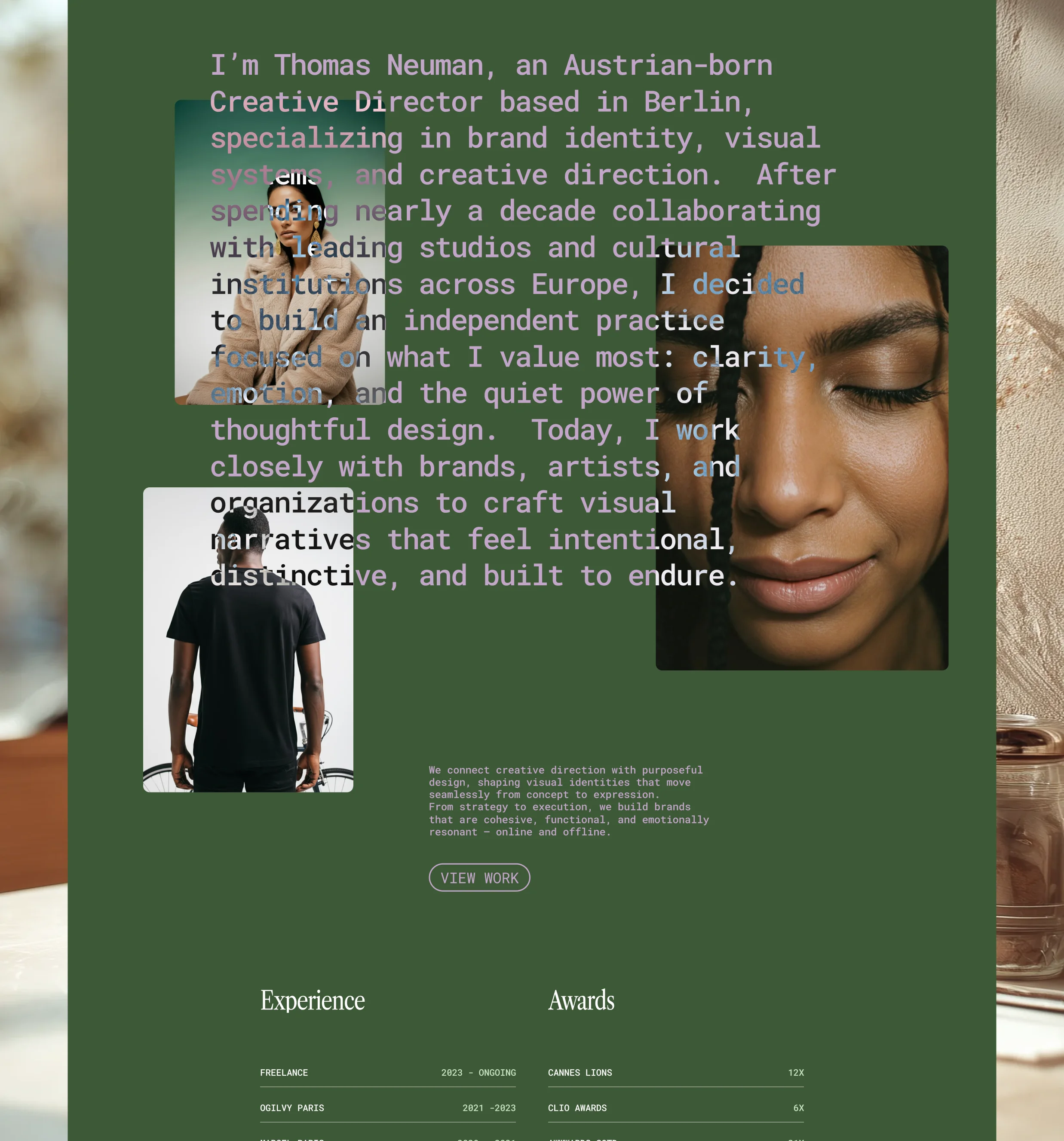 Thomas Neumann es una plantilla minimalista pensada para agencias y freelancers que desean mostrar su trabajo con un enfoque altamente visual. Su estructura limpia potencia los recursos de imagen y guía al usuario de forma natural a explorar los proyectos, mientras deja espacio para presentar la esencia, la historia y la identidad del estudio.